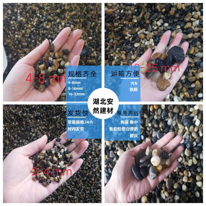 天然卵石是经过天然河流采挖、水洗、筛分而成,近似球状,且表面光滑,颜色为纯白色和杂色两种,耐磨度高,质地坚硬、不易损毁。砾石为石英矿石破碎后精加工而成。是各种净水过滤工艺中不可缺少的承托层滤料。